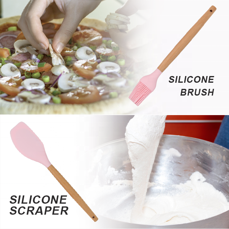Some tools are designed with hanging holes, which are convenient for storage and hanging, saving kitchen space and keeping the countertop tidy. The silicone head is soft and elastic, which can closely fit the inner wall of the pot, easily scraping off residual ingredients and reducing waste. The overall weight of the set is moderate, labor-saving and not cumbersome to use, and it is not easy to feel tired even after long-term operation.